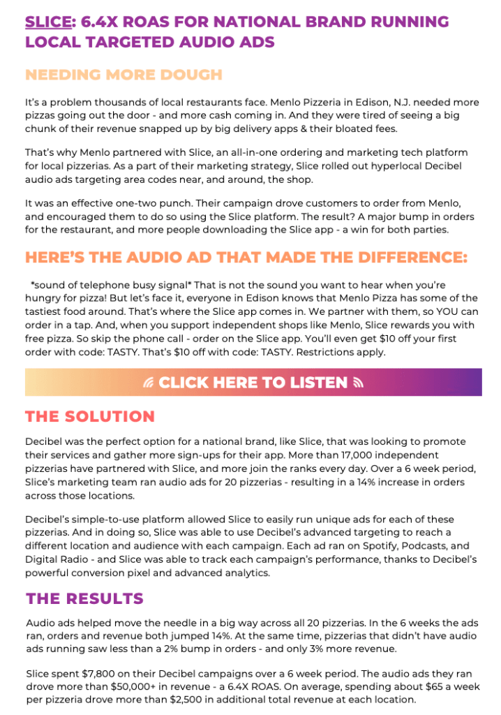 A deep dive into high-performing ad campaigns for a client serves as effective marketing collateral for Decibel.